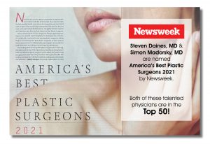 Dr. Steven Daines and Dr. Simon Madorsky were just named among America’s Best Plastic Surgeons 2021 by Newsweek magazine. Both physicians were recognized in the categories of Facelift and Rhinoplasty. Special bragging rights